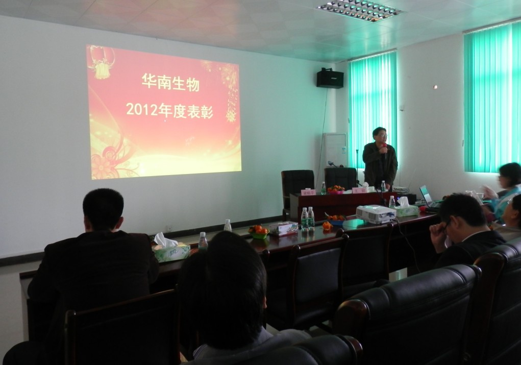 1月24日,華南生物2012年員工大會在辦公樓一樓會議室順利召開。王斌副總經理主持了本次會議,梁昭平總經理在會議上匯報了2012年度公司的經營情況、主要亮點工作及主要完成工作內容。梁總在現場講話中,感謝全體員工一年來對公司所做出的積極付出,充分肯定了華南生物員工在2012年里所取得的優異成績,并為企業描繪發展藍圖,鼓勵大家共同努力,取得新的輝煌。在肯定上一年度工作成績的同時,提出了企業在發展上存在的問題與改進辦法,展望未來一年的方向和目標,對新一年寄予了熱切的期盼。