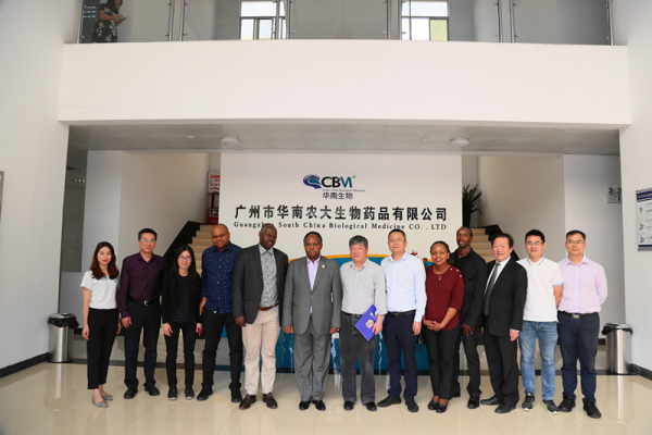 11月8日,肯尼亞內(nèi)羅畢大學(xué)團(tuán)隊在廣州謝諾中非投資管理有限公司魏曉林執(zhí)行總裁的陪同下到廣州市華南農(nóng)大生物藥品有限公司(以下簡稱華南生物)進(jìn)行參觀交流。