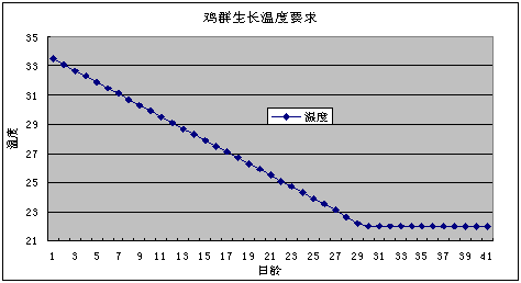 通風的目標是保持雞舍溫度處于合理范圍內,充分發揮雞群的生產性能。下例圖表說明了商品肉雞獲得最佳生產性能(料肉比和體重)對溫度的要求。從下圖可以看出,雞群日齡越小,溫度越重要,但是雞群的通風量應隨著溫度的周期性變化而變化,以滿足雞群的實際需要。