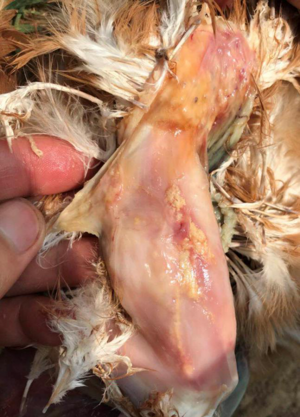 腿肌注射后容易損傷坐骨神經(jīng),嚴(yán)重的會(huì)出現(xiàn)癱瘓;另外,消毒不嚴(yán)格可能引起注射部位感染,部分雞出現(xiàn)癱瘓。