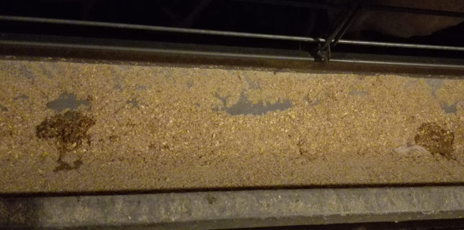 患雞精神沉郁,畏寒,呆立,采食量下降或不升,拉飼料便,吐口水,患雞逐漸消瘦,冠小、蒼白,腳蒼白,軟腳,雞群均勻度差,殘次雞多。