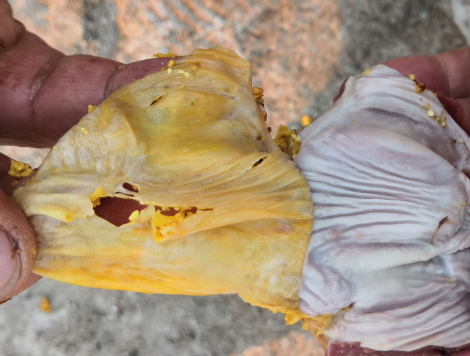 股骨頭壞死,股骨頭軟骨容易脫落;嗉囊白色假膜樣粘附物、潰瘍;腺胃腫大,壁變厚,腺胃乳頭腫脹、潰瘍,有的乳頭融合、界限不清;肌胃角質層增厚、易裂開脫落,甚至出現明顯潰瘍灶;肺充血、出血,肺等器官可見霉菌結節;肝腫大、質脆變性;胸腺萎縮;雞掉毛或出現皮膚壞死。