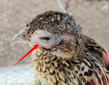 2、鼻孔先流出清液后轉(zhuǎn)為漿液粘性分泌物,有時打噴嚏。臉部、肉髯腫脹,呼吸困難,口鼻喉有粘液。